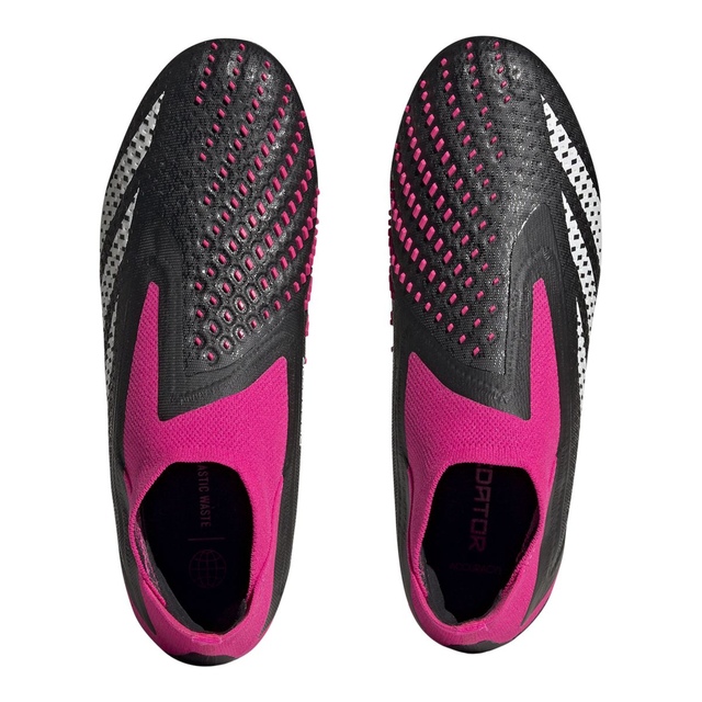 When the goal's in sight, target perfection with the adidas Unisex Predator Accuracy Firm Ground Outdoor Soccer Cleats. Featuring a laceless construction, these firm ground cleats have a soft HybridTouch upper with High Definition Grip rubber elements in the strike zone. This provides a solid grip on the ball, so the forefoot stays flexible for comfortable movement. Plus, the split outsole on the soccer cleats includes a Power Facet for punchy strikes.
