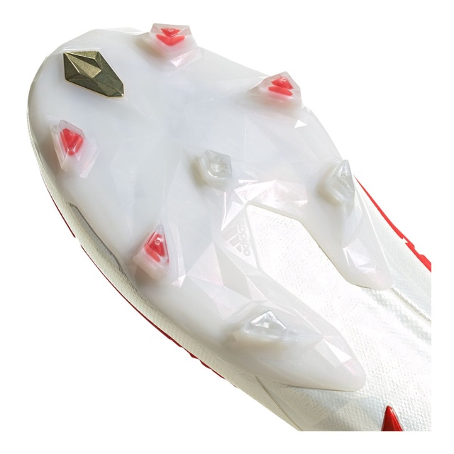 The adidas Unisex Predator Edge.1 Firm Ground Outdoor Soccer Cleats are designed to provide players with swerve, control, and power. The Zone Skin upper of these firm ground cleats has discrete ribbed sections for different types of ball contact. A weighted Power Facet in the forefoot adds oomph to strikes, and the adaptive adidas PRIMEKNIT collar keeps players locked in. The outsole of these soccer cleats offers excellent traction and stability on dry, natural grass surfaces.