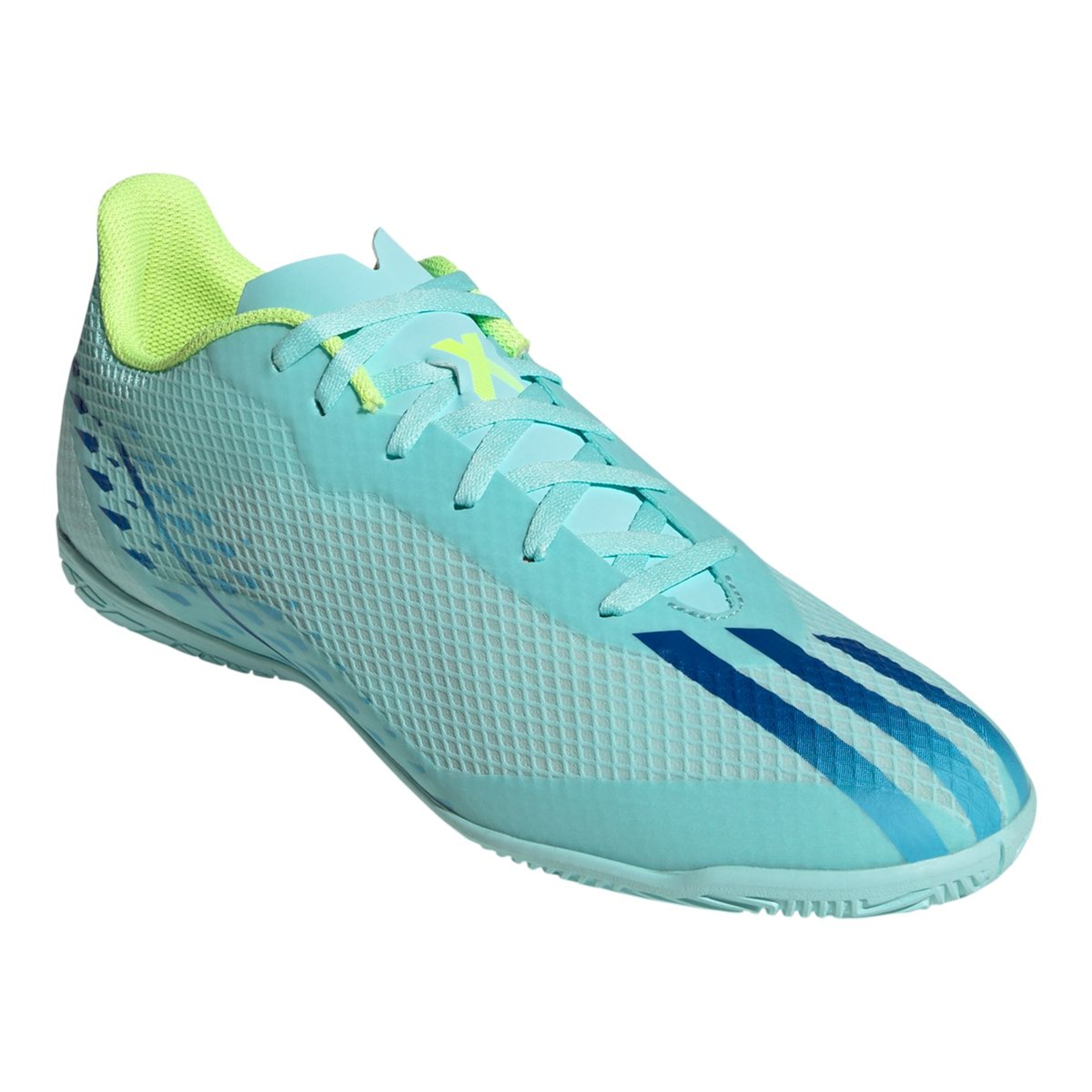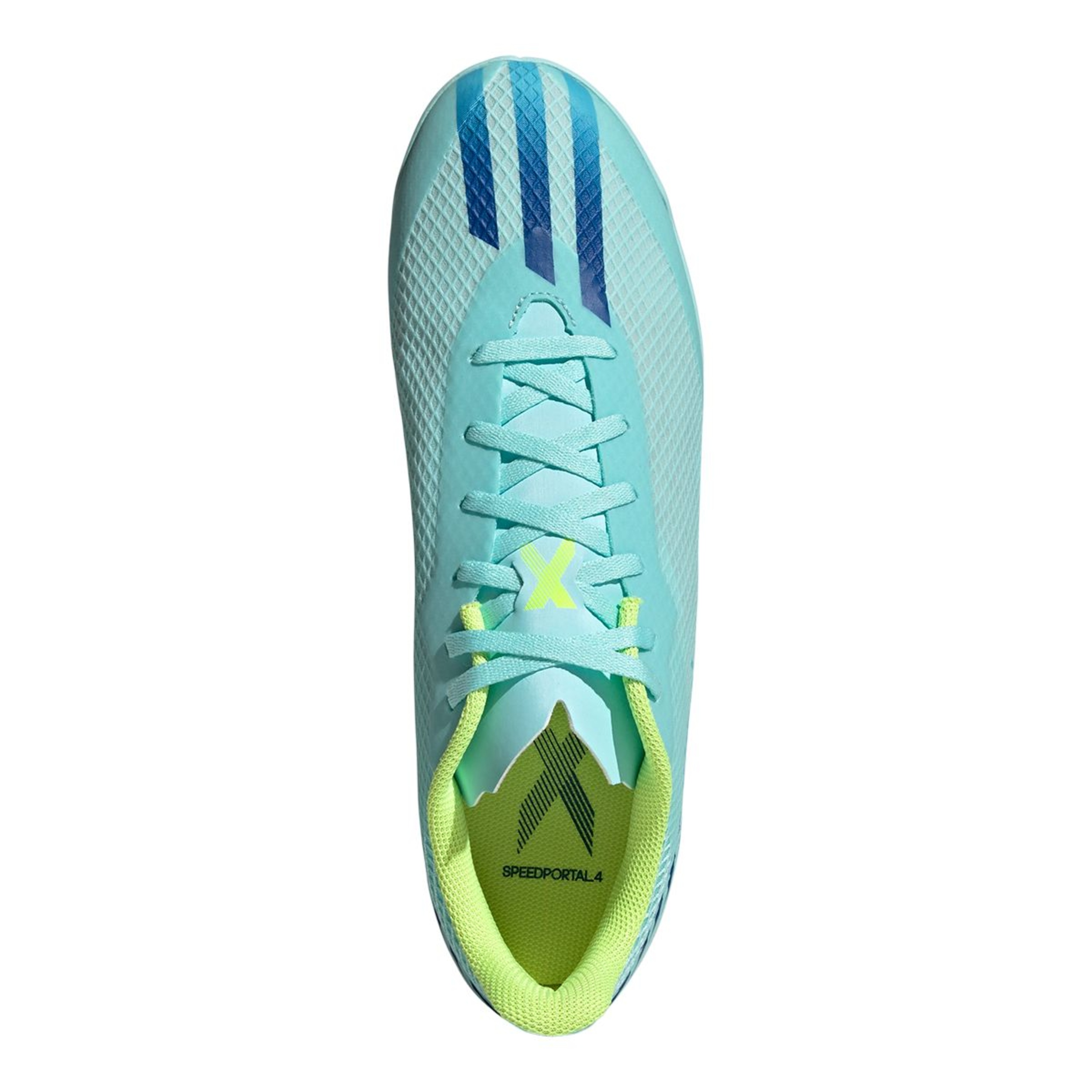 Time and space. It's all relative when you play in a different dimension. Open the gateway to multidimensional speed in adidas X Speedportal. These football boots were created for quick cuts and game-changing speed on flat indoor surfaces. Soft and durable, their coated textile upper helps you keep the ball under your spell when the on-court action intensifies. The graphics take inspiration from football's biggest stage. Made with a series of recycled materials, this upper features at least 50% recycled content. This product represents just one of adidas' solutions to help end plastic waste.