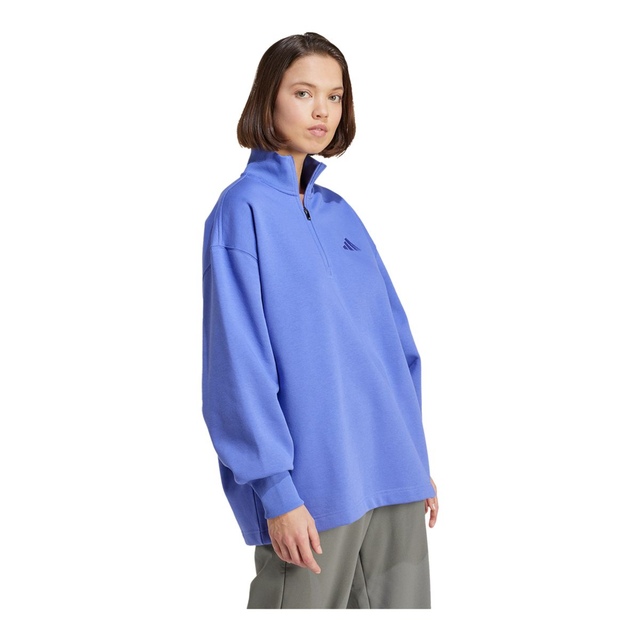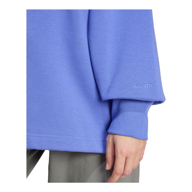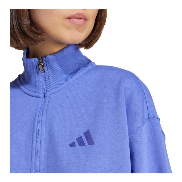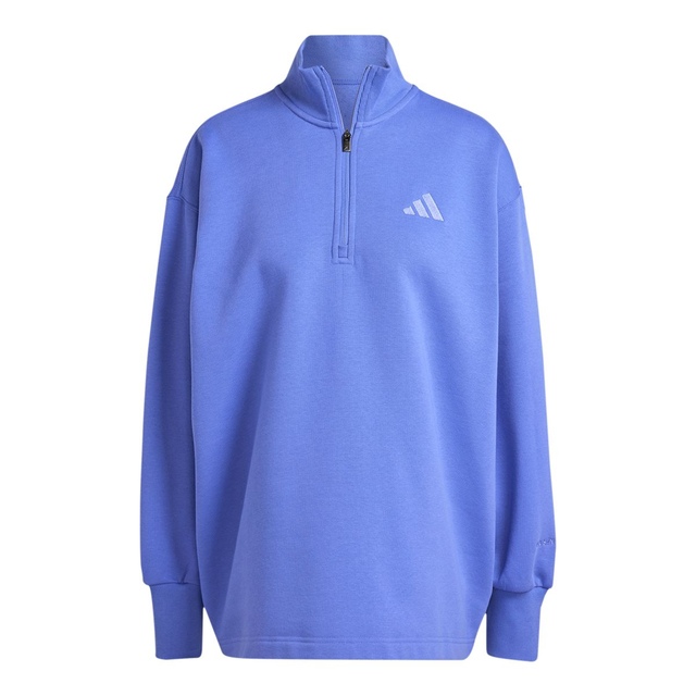 Enjoy the comfort that the adidas Women's All SZN Fleece Long Sleeve 1/4 Zip Top brings. This adidas sweatshirt delivers cozy style, featuring an oversized, loose fit that promotes relaxation and ribbed cuffs to help retain warmth. The brushed-back fabric ensures a soft touch, and the half-zip front offers versatility for styling various looks.
