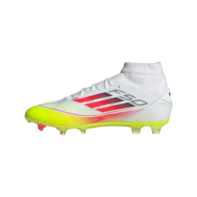 The adidas Women's F50 League Firm Ground Soccer Cleats deliver maximum speed and traction for the female athlete. Engineered with an adaptive mid-cut collar and thick sockliner, these women's soccer cleats provide a supportive, locked-in fit. The eye-catching Sprintgrid print on the Fiberskin upper combines with a versatile outsole to grip firm ground and artificial grass surfaces, allowing you to play at your fastest.