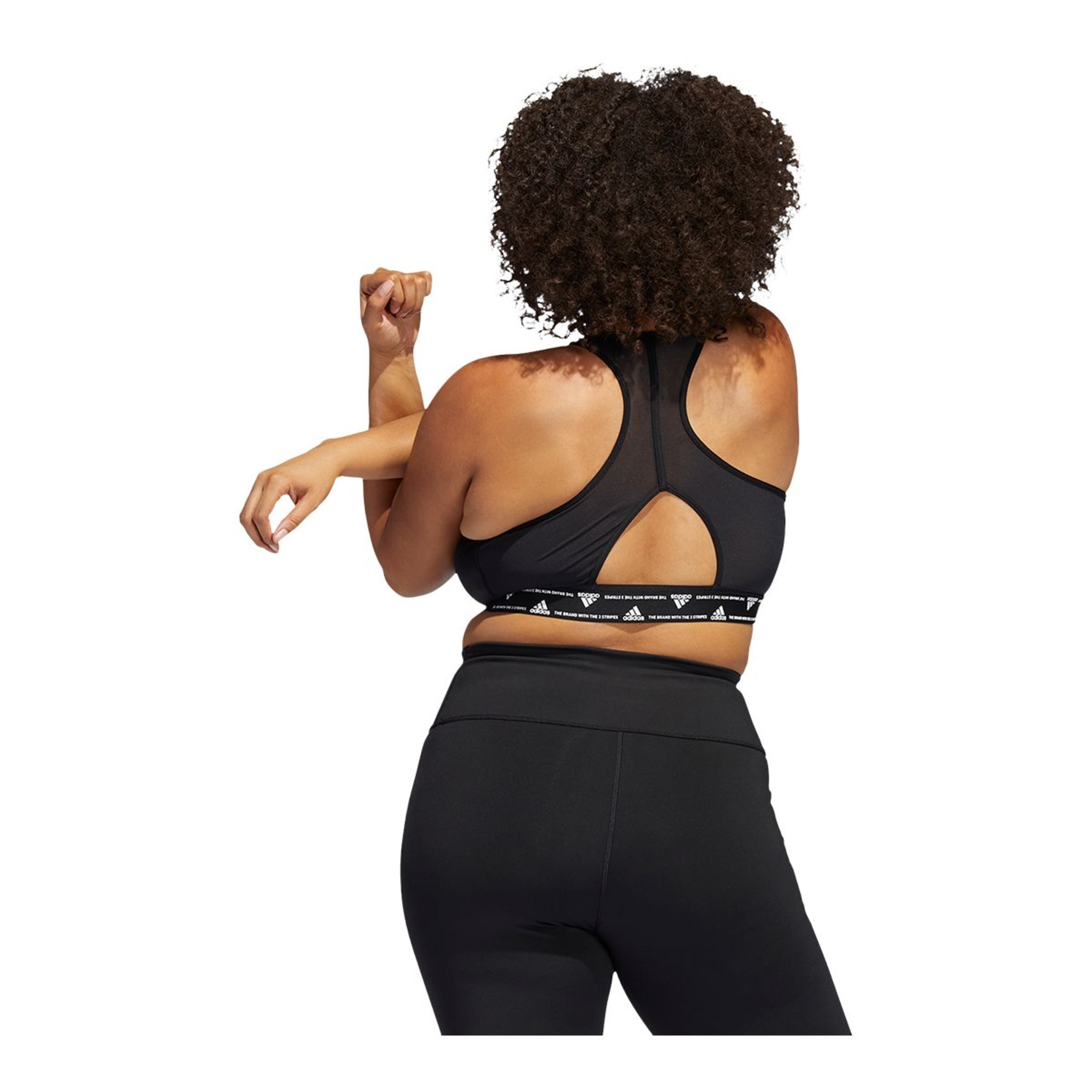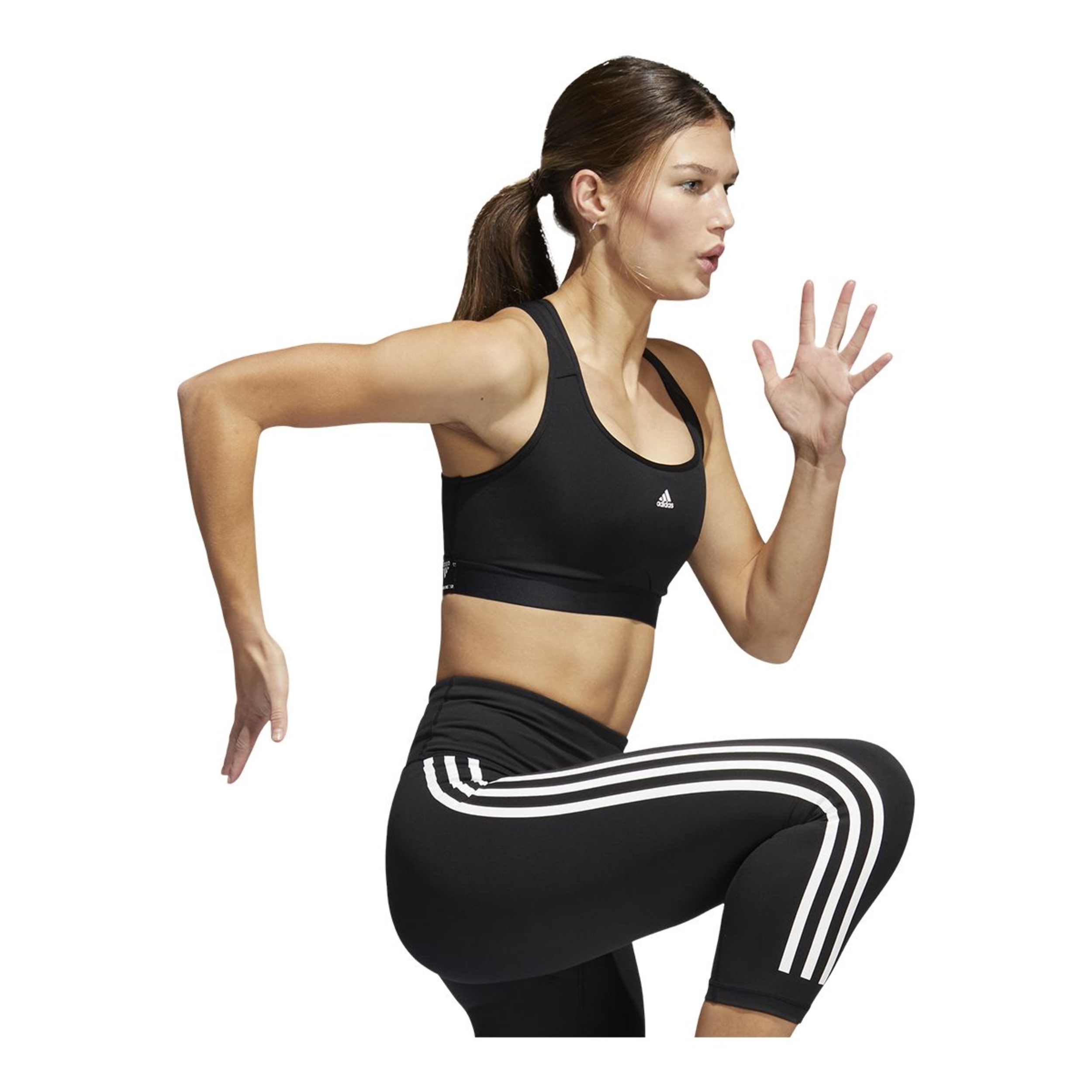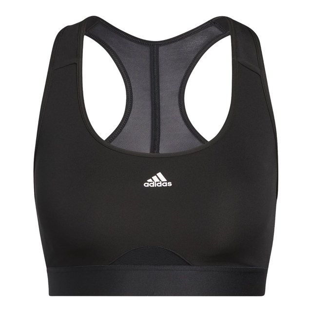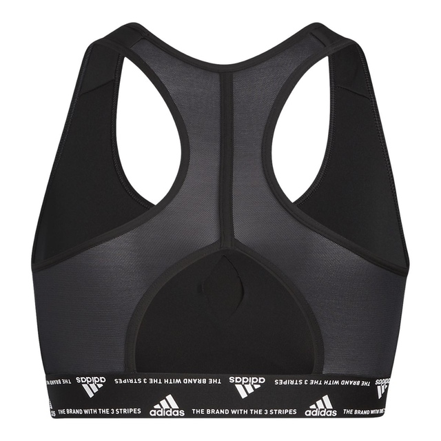 That first bead of sweat that rolls down your chest doesn't need to be a distraction. Just take it as a sign of your hard work and let this adidas sports bra do its thing from there. Breathable fabric feels smooth and cool. Moisture-absorbing AEROREADY keeps you dry and comfortable, and the breathable mesh details take that comfort further by increasing airflow to provide cool relief. Give it your all. That's exactly what this bra was made for.