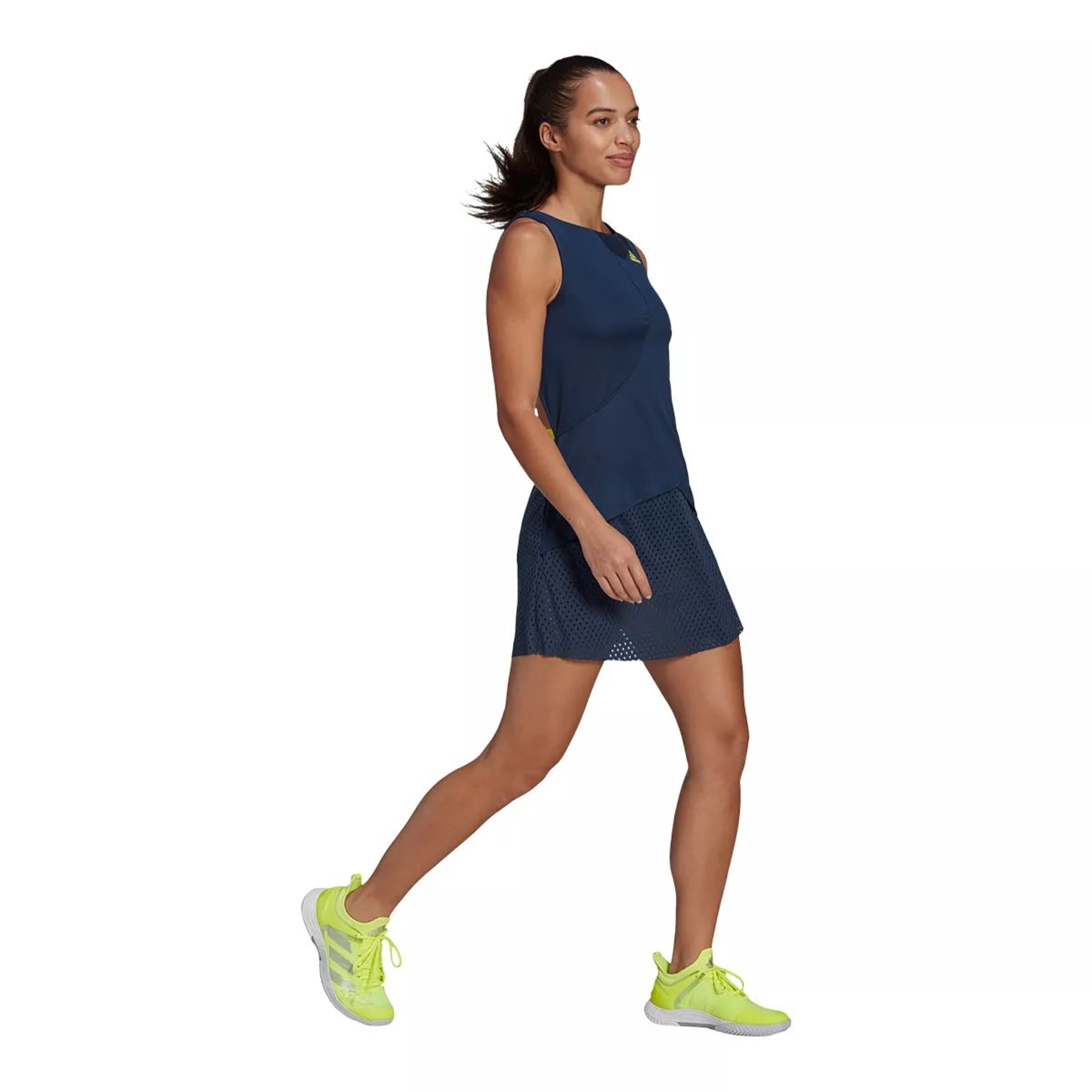 Play for the planet while beating the heat. Air-cooling HEAT.RDY fabric makes this adidas tennis dress perfect for scorching days on court. It was created using Primeblue made with Parley Ocean Plastic, part of the adidas commitment to help end plastic waste. Mesh panels on the back add interest and targeted ventilation. This product is made with Primeblue, a high-performance recycled material made in part with Parley Ocean Plastic.