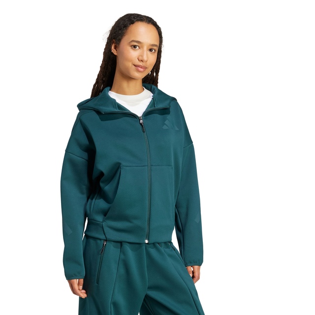 This adidas hoodie celebrates the community adidas find through sport. The soft three-layer adidas PRIMEKNIT fabric lends lightweight warmth and a soft feel, while the roomy hood adds extra coverage. Matte rubber-print graphics represent the lines that bring us together on the field of play. Zip it all the way up to block the breeze on cool days, or leave it open to show off your favorite team shirt beneath. When the game is about to start, stash your small essentials in the hidden zip pocket inside the kangaroo pocket and head out. By choosing recycled, adidas are able to reuse materials that have already been created, which helps to reduce waste. Renewable materials choices will help us to remove adidas reliance on finite resources. Adidas products made with a blend of recycled and renewable materials feature at least 70% total of these materials.