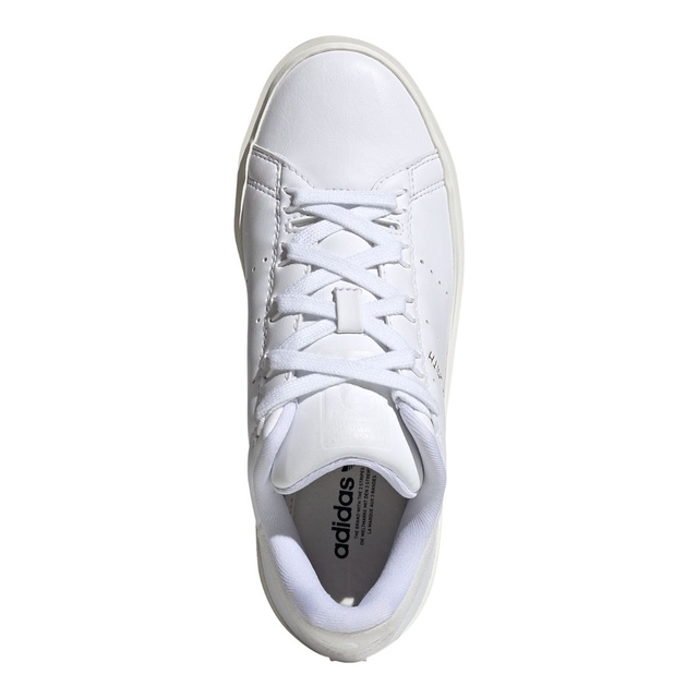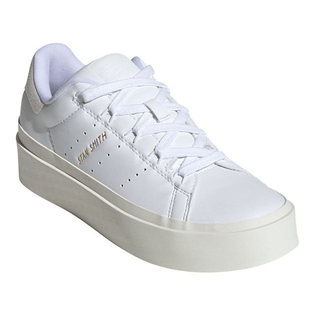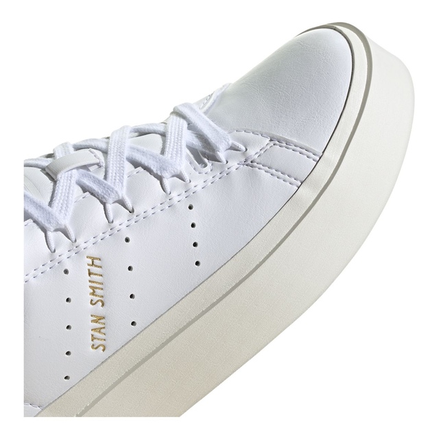 Don't be shy. Exaggerate. That's the attitude of these recoded adidas Stan Smith shoes. Take your look to new heights (literally) with a platform midsole. Level up your trainer game with a puffy tongue. Plush foam cushions every step so you can go strong all day (or night) long. Perforated 3-Stripes and metallic-gold accents stay true to the tennis original. Made with a series of recycled materials, this upper features at least 50% recycled content. This product represents just one of adidas solutions to help end plastic waste.