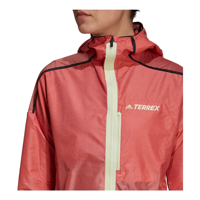Online Only: Leave the trailhead ready for changing conditions. Pack this adidas Terrex windbreaker for lightweight, breathable coverage that extends your range in the alpine. Windweave maps the fabric weave for breathability and wind resistance where you need them most. 360-degree reflective details shine in low light, and the jacket packs down into a small mesh pocket for easy stowing when not needed.