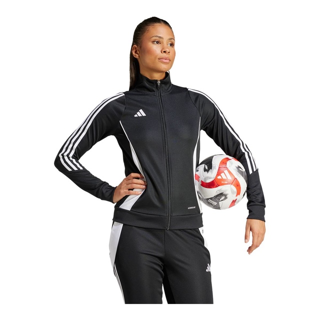 Get ready for game day with this adidas Women's Tiro 24 Track Jacket. The comfortable fit offers easy mobility, while moisture-managing AEROREADY keeps you dry as you warm up. It's lightweight and quiet, letting you focus on your game. Perfect for playing football in any weather.