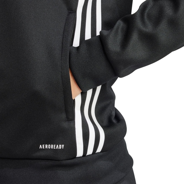 Introducing the Tiro25 Essentials Training Jacket for women, a football-inspired lifestyle product that's as versatile as it is stylish. Crafted with knit construction and featuring AEROREADY technology, this tracksuit jacket manages your body's sweat to keep you comfortable for longer. With its regular fit, embroidered logo, signature 3-stripes running down the sides, and colour blocking insert, it's designed to be worn on the street while still rooted in sport and culture from a football perspective. Made in part with recycled materials, it’s a sustainable choice for any active woman.