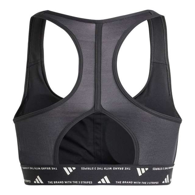 The adidas Women's Train PowerReact Medium Support Bra is designed for intense training sessions. With mesh panels and adidas AEROREADY technology, it keeps you cool and dry throughout your workout. Whether you're dancing, cycling, or playing volleyball, this racerback bra provides the support you need. Made with at least 70% recycled materials to support sustainability efforts.