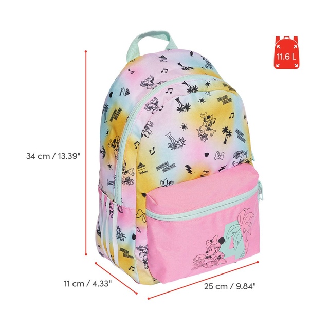Add a little Disney magic to everyday adventures with the adidas YA Disney Minnie Backpack. Perfectly sized for young fans, it features padded adjustable straps, slip-in side pockets for snacks, and a spacious interior. Made from at least 50% recycled materials, this backpack is both fun and eco-conscious, supporting adidas' sustainability efforts.