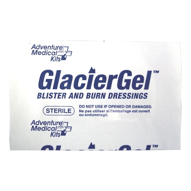 The Adventure Medical Kits GlacierGel Blister & Burn Dressing provides instant relief from blisters and burns. Featuring GlacierGel™ technology, this cool and waterproof dressing stays securely in place for days. The breathable adhesive gels cushion and absorb moisture, helping the blister or burn to remain clean and heal faster. This medical dressing is easy to use: peel and stick without needing tape or other medical supplies.
