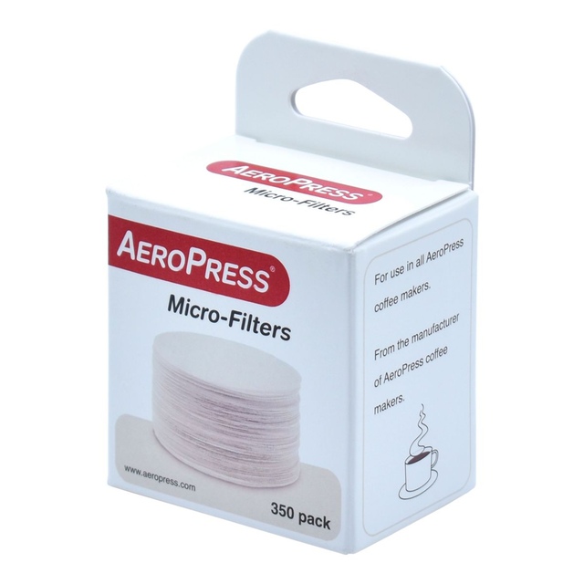 The AeroPress Replacement Coffee Filter includes 700 reusable and compostable micro-filters compatible with AeroPress Original and AeroPress Go coffee makers. This filter removes grit from your coffee, ensuring a smooth drink. It's an eco-friendly coffee filter that you can reuse or compost, helping you enjoy great coffee sustainably.
