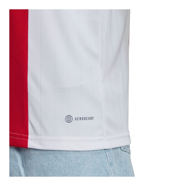 A classic kit for a classy club. Staying true to Ajax Amsterdam's rich heritage, this adidas home jersey preserves a timeless look. A second glance reveals pinstriped details and strands of gold that celebrate a history of glittering success. Created for players and supporters, this shirt will keep you comfortable with mesh inserts and moisture-absorbing AEROREADY. Made with 100% recycled materials, this product represents just one of adidas's solutions to help end plastic waste.