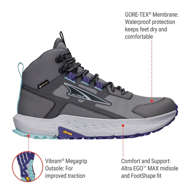 Discover the ultimate trail companion with the ALTRA Women's Timp 5 Hike Gore-Tex Waterproof Hiking Shoes. These lightweight boots offer exceptional ankle support and are designed to handle any weather and terrain. Perfect for avid hikers, they ensure comfort and protection on every adventure.