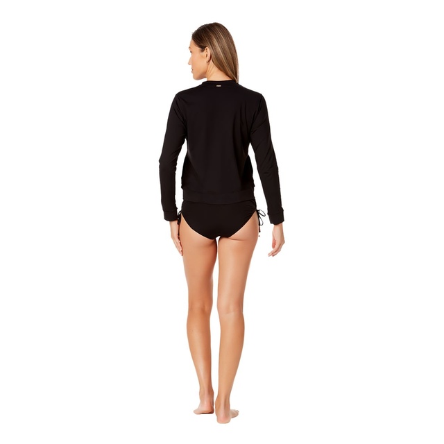 This Long Sleeve Zip Front Rash Guard Top is part of the Live in Color collection, which features a bold, solid color. This rash guard top has full zip front detail providing comfortable support and style for your summer