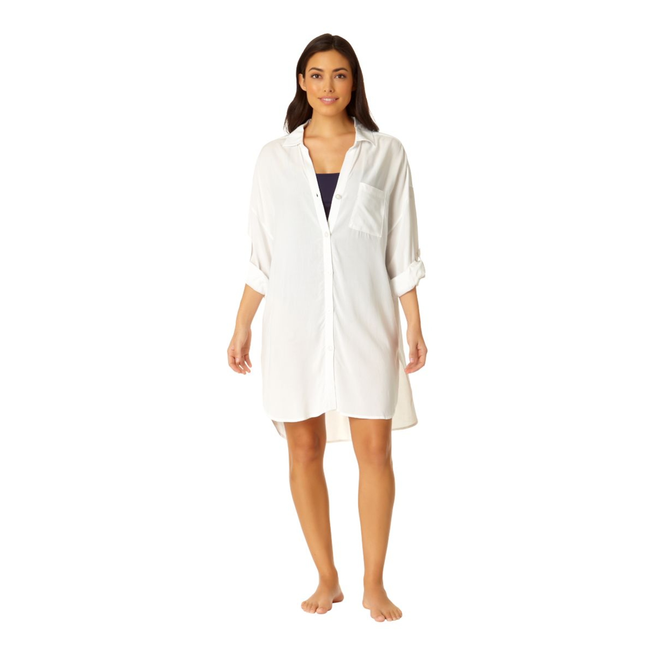 The Anne Cole Women's Shirttail Button Down is your perfect beach companion. This versatile button-down shirt coverup effortlessly transitions from poolside lounging to a stroll on the boardwalk. Designed for effortless style, this Anne Cole shirt easily slips on your swimsuit, providing the right coverage for beach adventures.