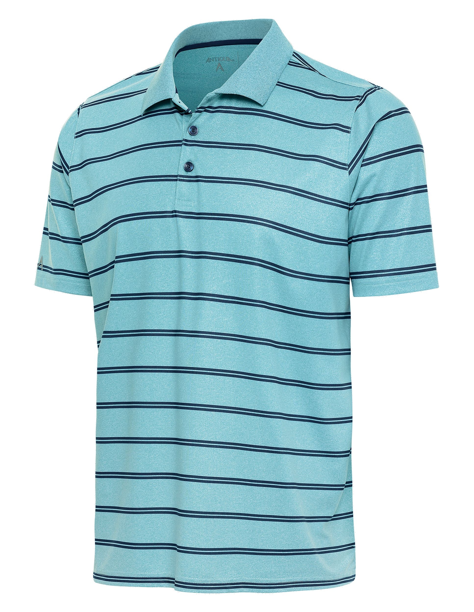 This Antigua men's polo shirt combines performance and style. The matte polyester/spandex jersey fabric wicks moisture while providing stretch and comfort. Vented side hems allow airflow. The flat knit collar and cuffs retain their shape wear after wear. Durable matte buttons complete the clean, sophisticated look. With its moisture-wicking fabric, vented design and Antigua logo on the sleeve, this polo keeps you cool while making a stylish statement on the course.