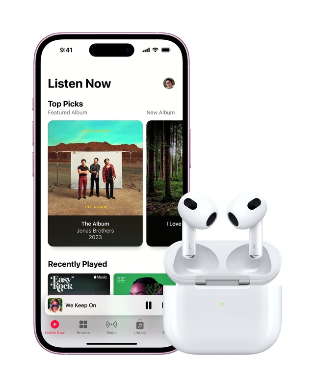 Experience immersive sound with Apple AirPods 3rd Generation Wireless Earbuds. Personalized Spatial Audio with dynamic head tracking delivers a rich, engaging audio experience. Sweat and water-resistant, they're perfect for workouts or outdoor activities. Dual microphones enhance voice clarity, while touch controls offer ease and practicality. Enjoy up to 6 hours of listening on a single charge, with up to 30 hours using the charging case.