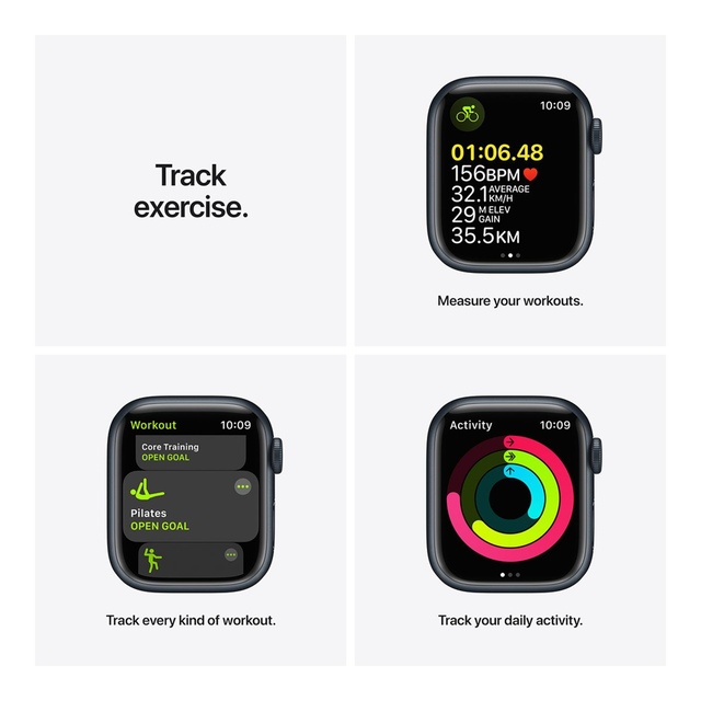 he largest, most advanced Always-on Retina display yet makes everything you do with your Apple Watch Series 7 bigger and better. Series 7 is the most durable Apple Watch ever built, with an even more crack-resistant front crystal. Advanced features let you measure your blood oxygen level,1 take an ECG anytime2 and access mindfulness and sleep tracking apps. You can also track dozens of workouts, including new tai chi and pilates Apple Watch Series 7 requires an iPhone 6s or later with iOS 15 or later.