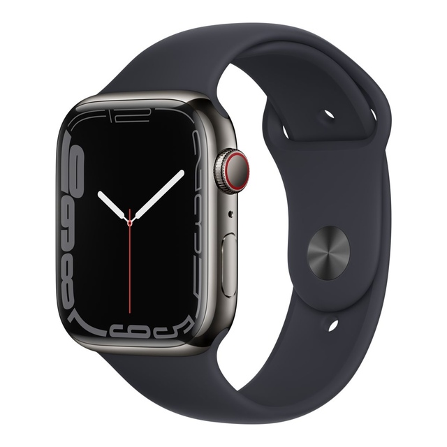 The Apple Watch Series 7 features the largest Always-On Retina display yet, making everything you do with it bigger and better. It's also the most durable Apple Watch ever built, with a more crack-resistant front crystal. Advanced features include blood oxygen level measurement, ECG capabilities, and access to mindfulness and sleep tracking apps. You can track various workouts, including tai chi and Pilates. Series 7 requires an iPhone 6s or later with iOS 15 or higher. Please note that blood oxygen measurements and the ECG app are not intended for medical use. The watch is water-resistant up to 50 meters and dust-resistant. The irregular rhythm notification feature requires the latest watchOS and iOS versions. Battery life varies based on use and configuration.