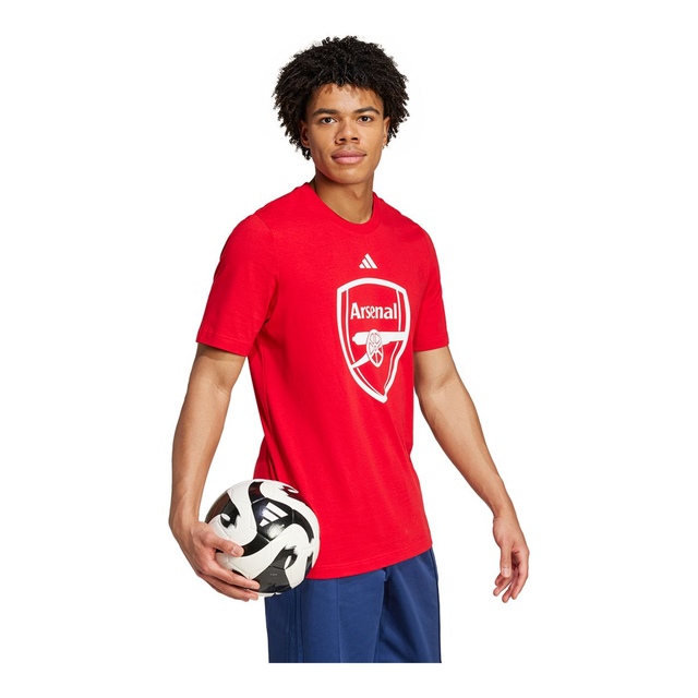 Show your loyalty with the Arsenal F.C. adidas DNA T-Shirt. Featuring a bold club crest on the chest, this tee proudly displays your soccer allegiance. Made from soft cotton jersey, it offers comfort for both lounging at home and cheering on your team during the match.