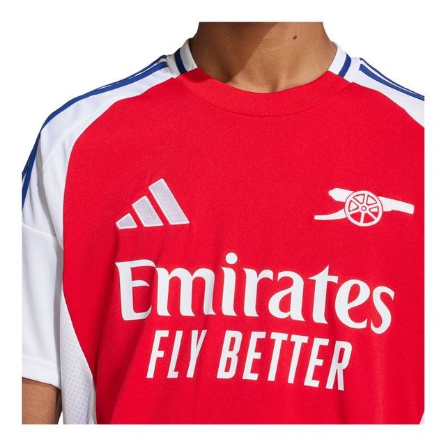 Wear the Arsenal F.C. adidas Replica Home Jersey and cheer on your favourite team as they chase their dreams. Standing out against those timeless home colours, a simple embroidered crest is the star of this Arsenal jersey from adidas. Featuring moisture-wicking technology, the soft interlock fabric combines to keep soccer fans comfortable while they enjoy themselves.