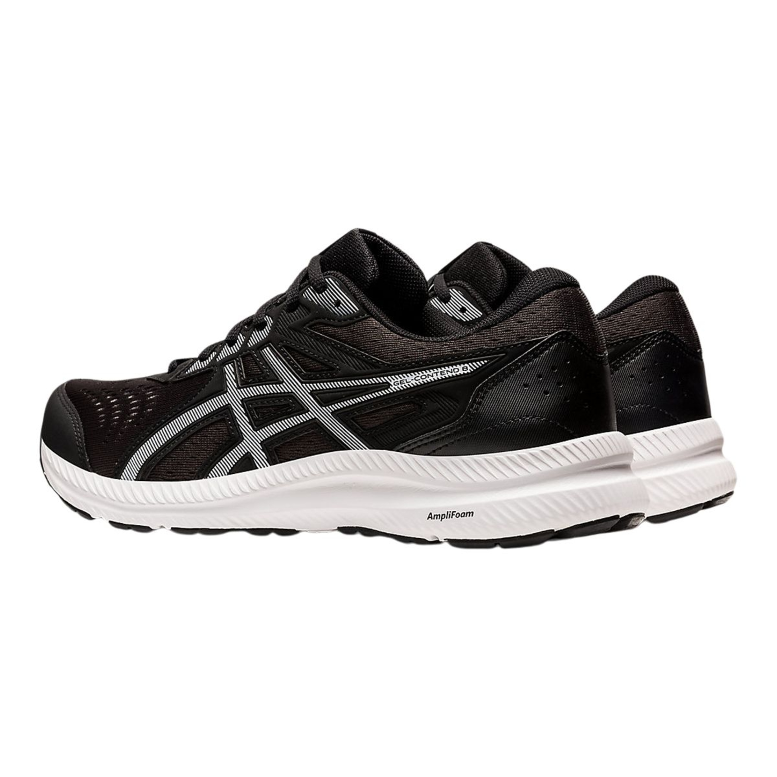 The GEL-CONTEND™ 8 (Extra Wide) running shoe provides good cushioning, support, and durability. A jacquard mesh upper stretches with the foot's natural motion and creates a comfortable fit. Meanwhile, the synthetic stitching on the overlays helps create a more supportive foothold. The midsole features GEL® technology and AMPLIFOAM™ cushioning. These technologies help increase durability while creating a softer feel underfoot.