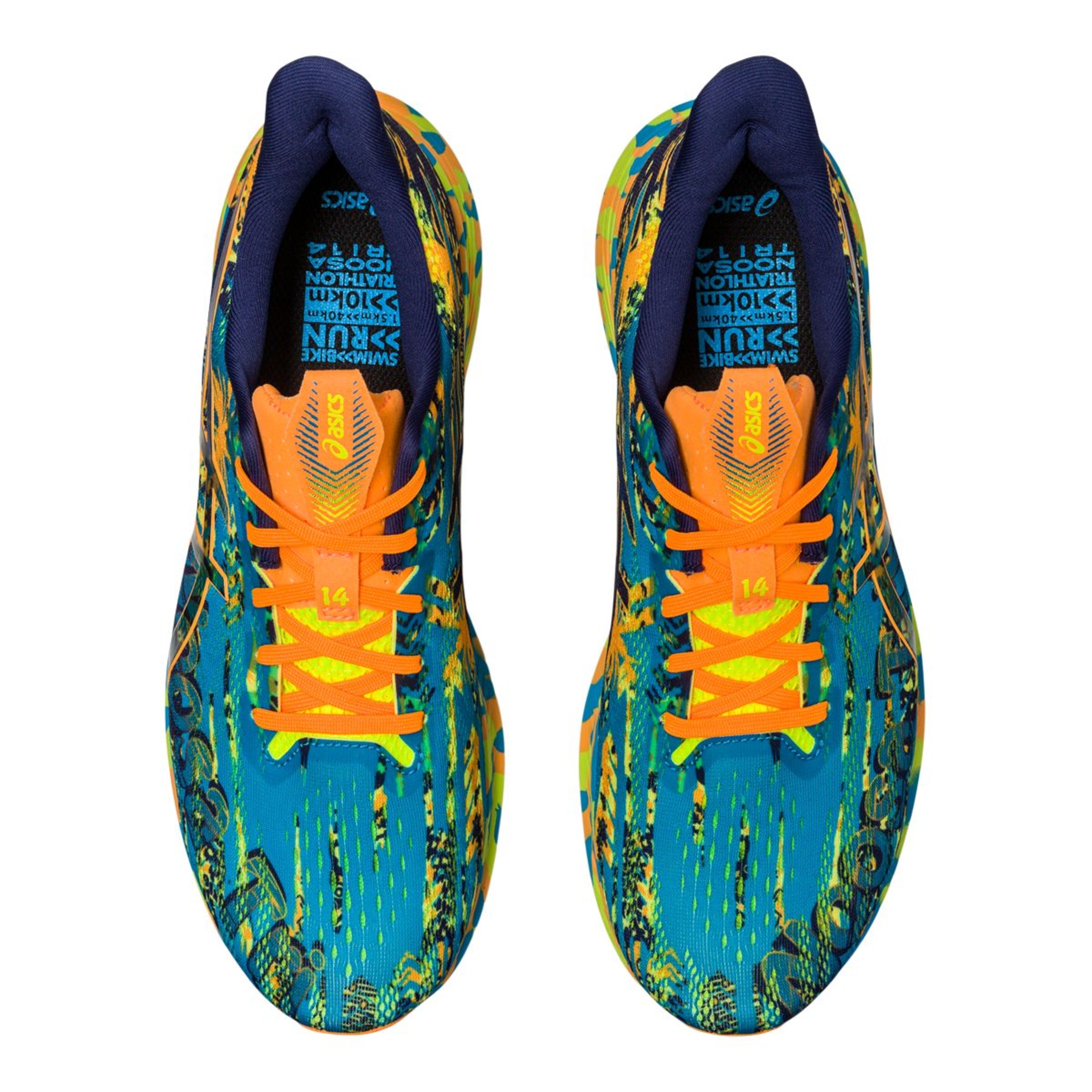 The ASICS Men's Noosa Tri™ 14 Lightweight Breathable Mesh Running Shoes combine archived inspiration with a sock-like fit. The lightweight design ensures an efficient ride underfoot. Inspired by the early GEL-NOOSA™ styles from the 2s, the bold colours and patterns on the engineered mesh upper add character. The heel pull-tabs and toggled laces make these running shoes easier to put on to get out the door quicker. Designed with GUIDESOLE™ technology underfoot, these breathable running shoes help reduce ankle flexion while conserving energy.