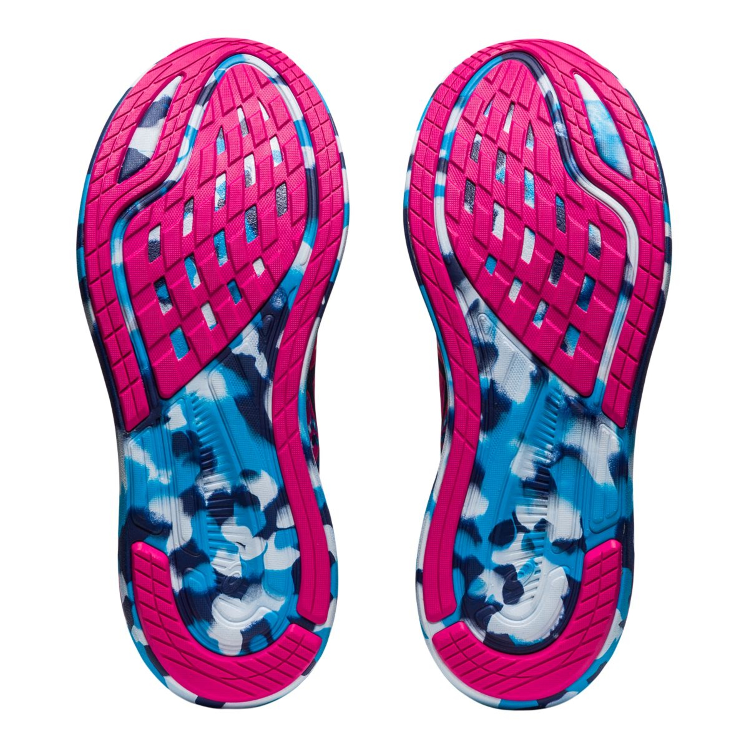 The ASICS Women's Noosa TRI 14 Lightweight Mesh Training Shoes combine archived inspiration with a sock-like fit. The shoe is made with lightweight construction and an efficient ride underfoot. Engineered mesh uppers feature bold colours and patterns inspired by early GEL-NOOSATM styles. Convenient features, like heel pull-tabs and toggled laces, make shoes easier to put on after exiting the swim stage of a triathlon or getting out the door quickly. With GUIDESOLE™ technology underfoot, these running shoes reduce ankle flexion. Its curved design conserves energy and promotes easy-forward movement.