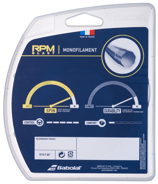 RPM Blast brings heavy spin and maximum control to your game. As you swing big with full strokes, RPM Blast consistently performs and lives up to the hype. You’ll be ripping winners, hitting dipping pass shots, and creating angles you didn’t know existed. Just ask Rafa. Or his opponents. Made in France. Your strings are the engine of your racquet. Half of your racquet’s performance comes from your strings. Which means choosing the right string is important. We invented tennis string in 1875. And we’ve been innovating ever since, so you can play your best and enjoy the game more than ever.