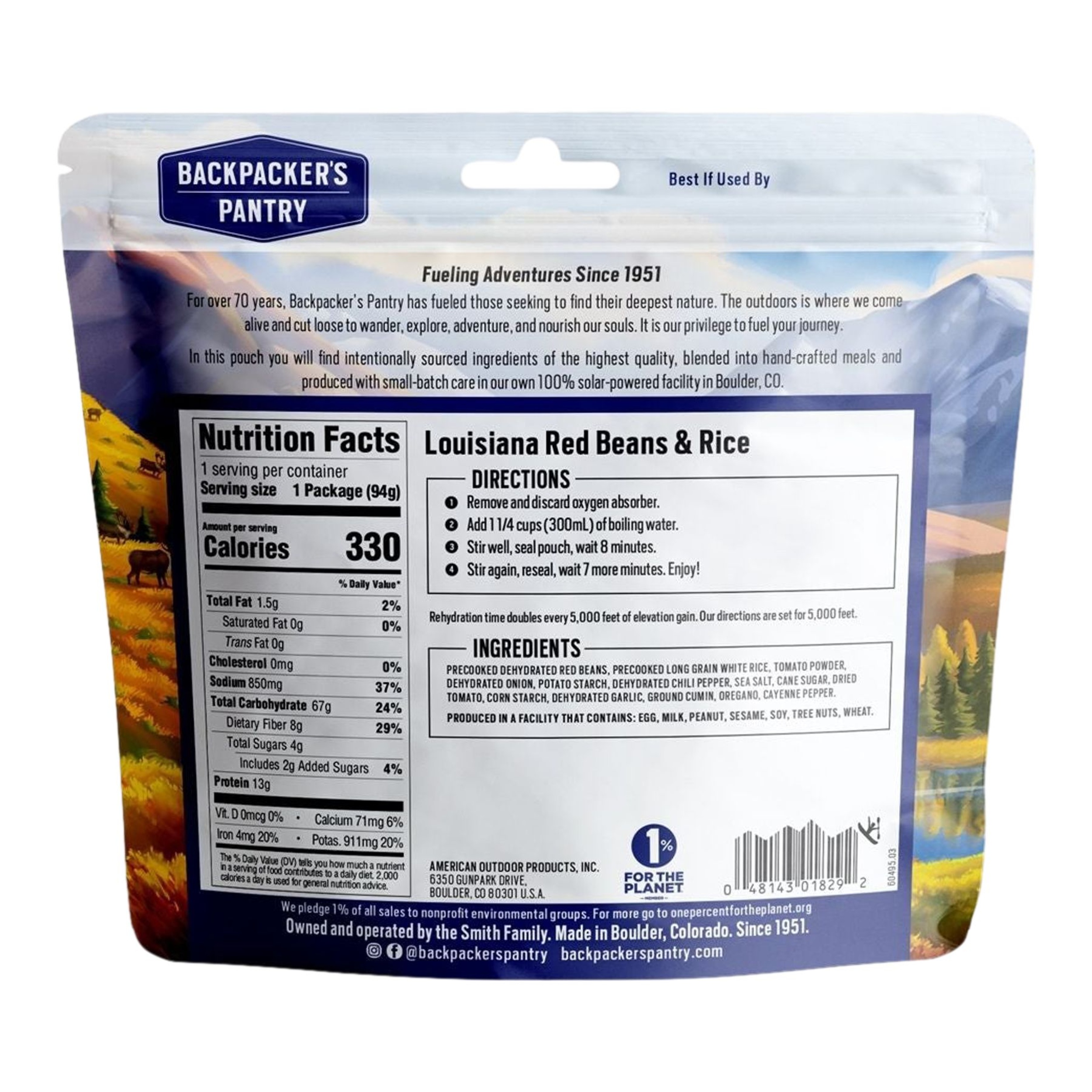 Backpacker's Pantry Louisiana Beans and Rice have 10 year shelf life for long camping adventures