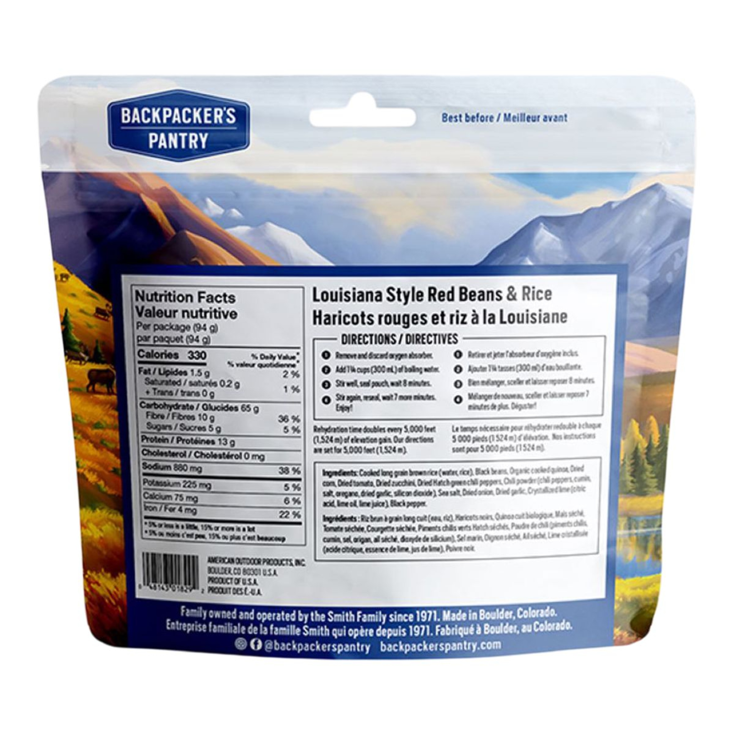 The Cajun-inspired Backpacker's Pantry Louisiana Beans and Rice have premium long grain white rice, tomatoes, onions, and spices for a savoury taste