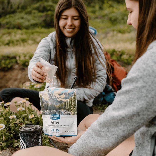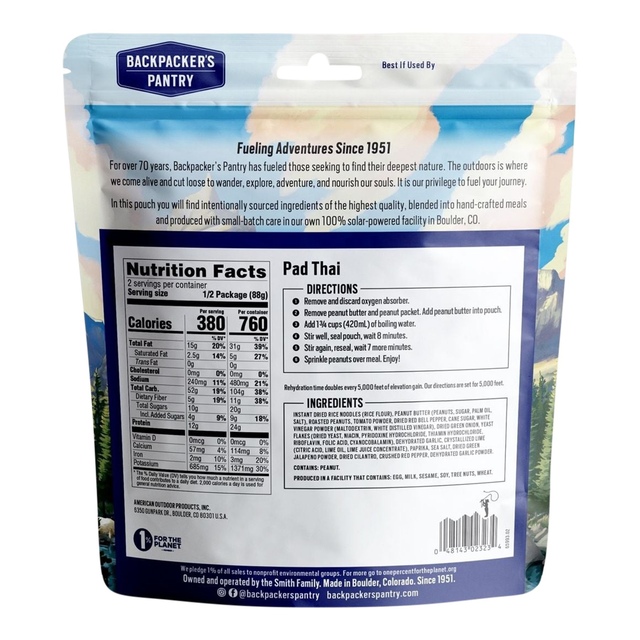 Backpacker's Pantry Pad Thai offers a fusion of authentic flavours with its rice noodles, organic textured soy protein and a zesty sauce of tomato powder, vinegar and spices. Topped with dry roasted peanuts, sriracha powder and green onions, this Backpacker's Pantry vegan dish is a hearty, flavourful choice for adventurers.