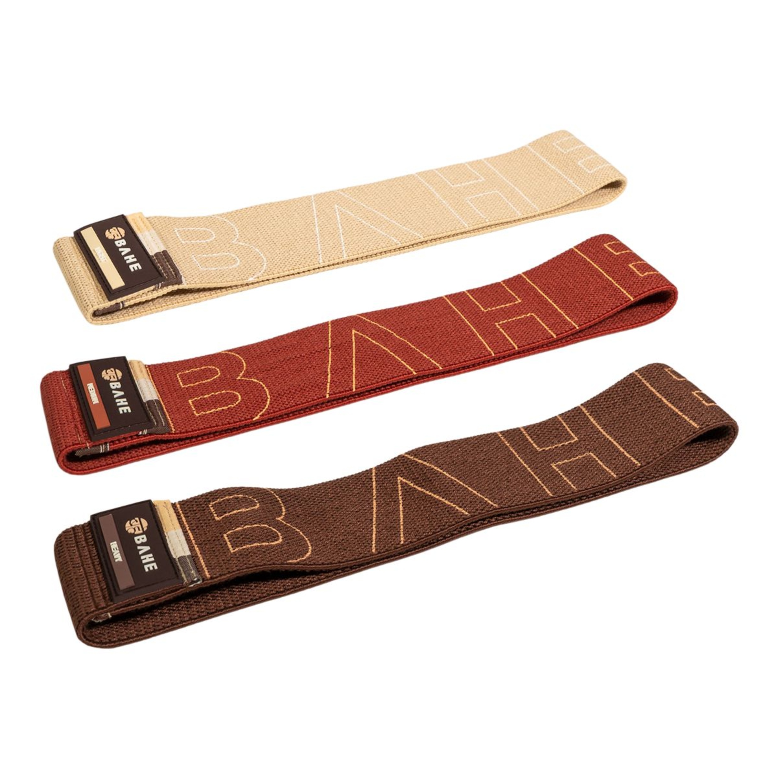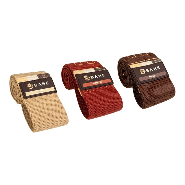 The BAHE Flow Loops Luxe are ultra-stylish, super durable, machine washable, fabric resistance bands. This pack is designed to let you progress at your own pace with light, medium and heavy resistance levels.