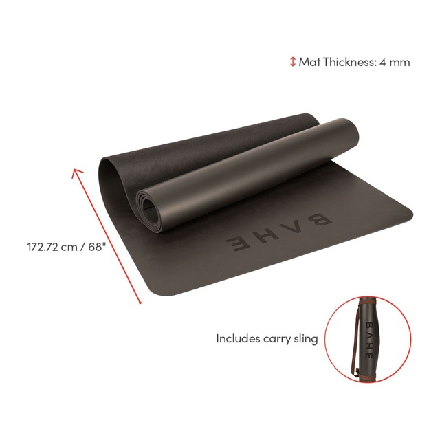The BAHE Power Hold Durable 68" 4mm Yoga Mat is designed to offer a high performance experience with excellent grip. With its firmness and density, this yoga mat provides excellent support and balance during challenging poses. It lays flat on the ground, providing a smooth and even surface for practice. Plus, the ultra grippy textured top of this exercise mat improves with more sweat for better traction.