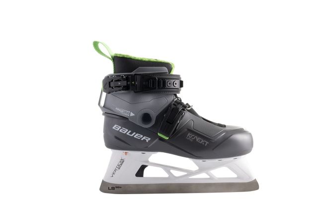 All of the performance advantages of the KONEKT skate, now in intermediate sizes and a lower price point. The KONEKT HF2 features the same 22 degrees of flex and shell molding process, but with different materials and a new lower buckle system. Now, even more goalies can join the flex experience.