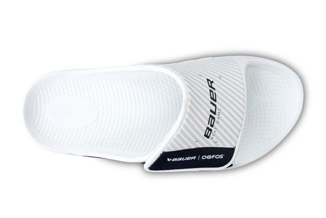 Start recovery mode as soon as you step off the ice with a sport slide featuring OOfoam™ technology and patented footbed for additional support. This unique foam technology absorbs impact, so your body doesn’t have to – helping you get back for your next game. Sport Flex: A contemporary spin on the classic slide, with an adjustable upper strap for a more optimal all-around fit - with the option to add a hand-written player number under the tag to personalize your slide.