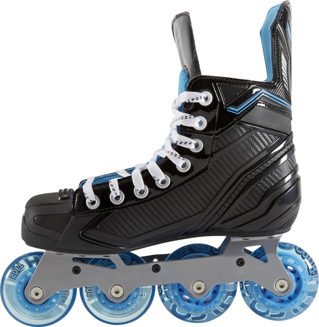 The Bauer Men's RSX Inline Hockey Skates are equipped with top-of-the-line features for an exceptional skating experience. Anatomically designed 2-piece felt tongue with an insert offers enhanced impact protection. Anaform ankle pads deliver superior cushioning and support, providing a comfortable fit. Hi-LO Ventilator Steel chassis provides stability and control, ensuring long-term durability. With Hi-LO Court Wheels, these inline hockey skates deliver excellent grip, speed, and durability on various surfaces.