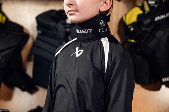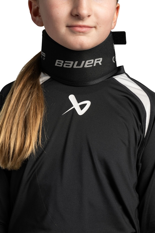Protect your neck with the Bauer Core neck guard collar. With lightweight, highly effective padding and an adjustable fit, this guard is both comfortable and adds a layer of protection when it counts. Anti-odour and anti-moisture technology keep you comfortable, while the reinforced nylon construction protects against cut and slash injuries.
