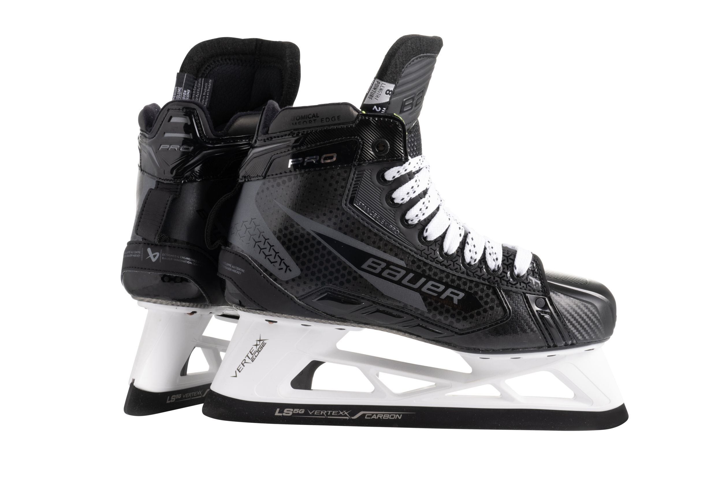 Every brick wall needs a solid foundation. Improved for Season ’24, the BAUER Pro Goal Skate is back and better than before. Designed for elite and competitive goalies, this skate features a traditional skate construction with a reinforced toe cap for added comfort and optimized strength.