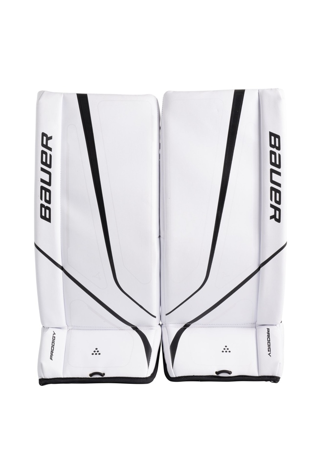 Designed for the developing goalie, the Bauer Prodigy youth leg pads provide superior protection without sacrificing mobility. Their tapered, reinforced build encourages proper butterfly technique while the large knee block absorbs impact. Adjustable calf wraps ensure a custom, secure fit. With strategically placed padding to absorb shots, these lightweight pads help young goalies gain confidence in the crease. Thoughtful features like the knee block and calf wraps provide comfort for the butterfly and stability for pushes and slides.