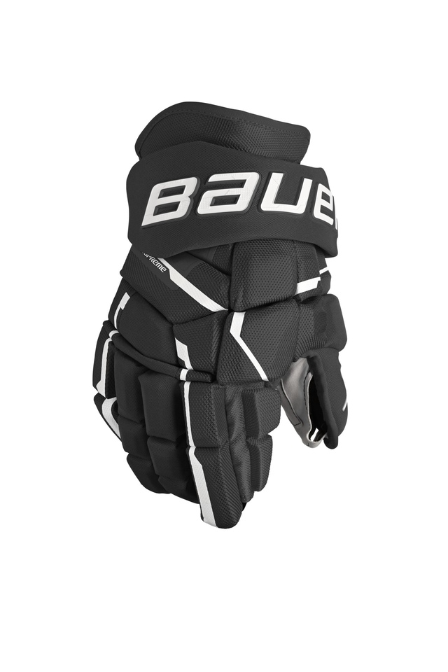 Elevate your game with the Bauer Supreme Mach Senior Hockey Gloves. These gloves offer pro-level protection with a 3-SHOX backhand featuring EPP and DC Tech foam. The CURV Composite AMP cuff and three-piece flex thumb provide superior mobility and flexibility. Enjoy enhanced stick feel with the light grey DuraCONNEKT palm, all encased in a durable PRO Lite Tex and Cable mesh shell.