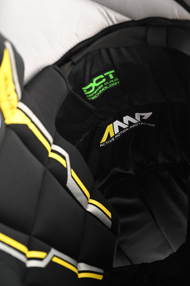 Ultimate protection and mobility. Features DC TECH Hip Protection. CURV composite spine protection. AMP Split cap hip guard combined with Flex Forward kidney, allowing for maximum mobility and efficiency on the ice.