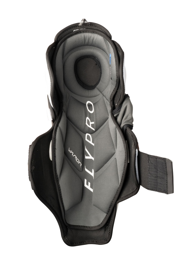 Enhance your game with the Bauer Vapor Flypro Intermediate Shin Guard. These hockey shin guards offer performance-level protection in a lightweight, tapered design, allowing you to play fast and agile. The molded liner and wider calf strap ensure maximum comfort with every move on the ice.