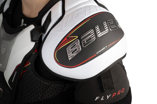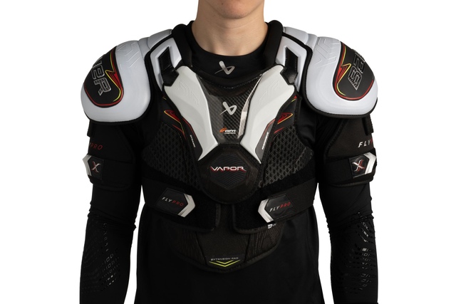 Enhance your ice hockey game with the Bauer Vapor Flypro Intermediate Shoulder Pads. Designed for superior protection, these ice hockey pads feature exposed HYPERLITE foam and lightweight CURV® composite to shield you from intense physical play. The anatomical molded fit ensure you stay agile and quick on the ice.