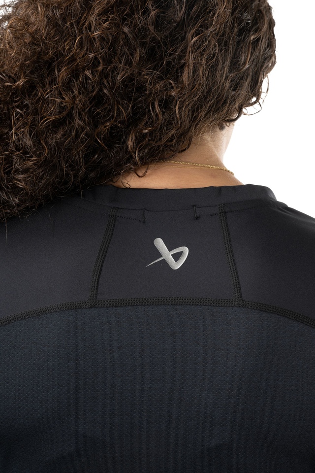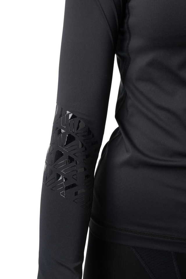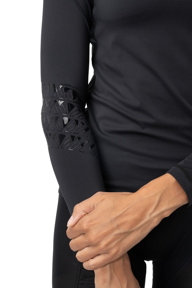 Silicone gripper print along sleeves to help hold elbow pads in place