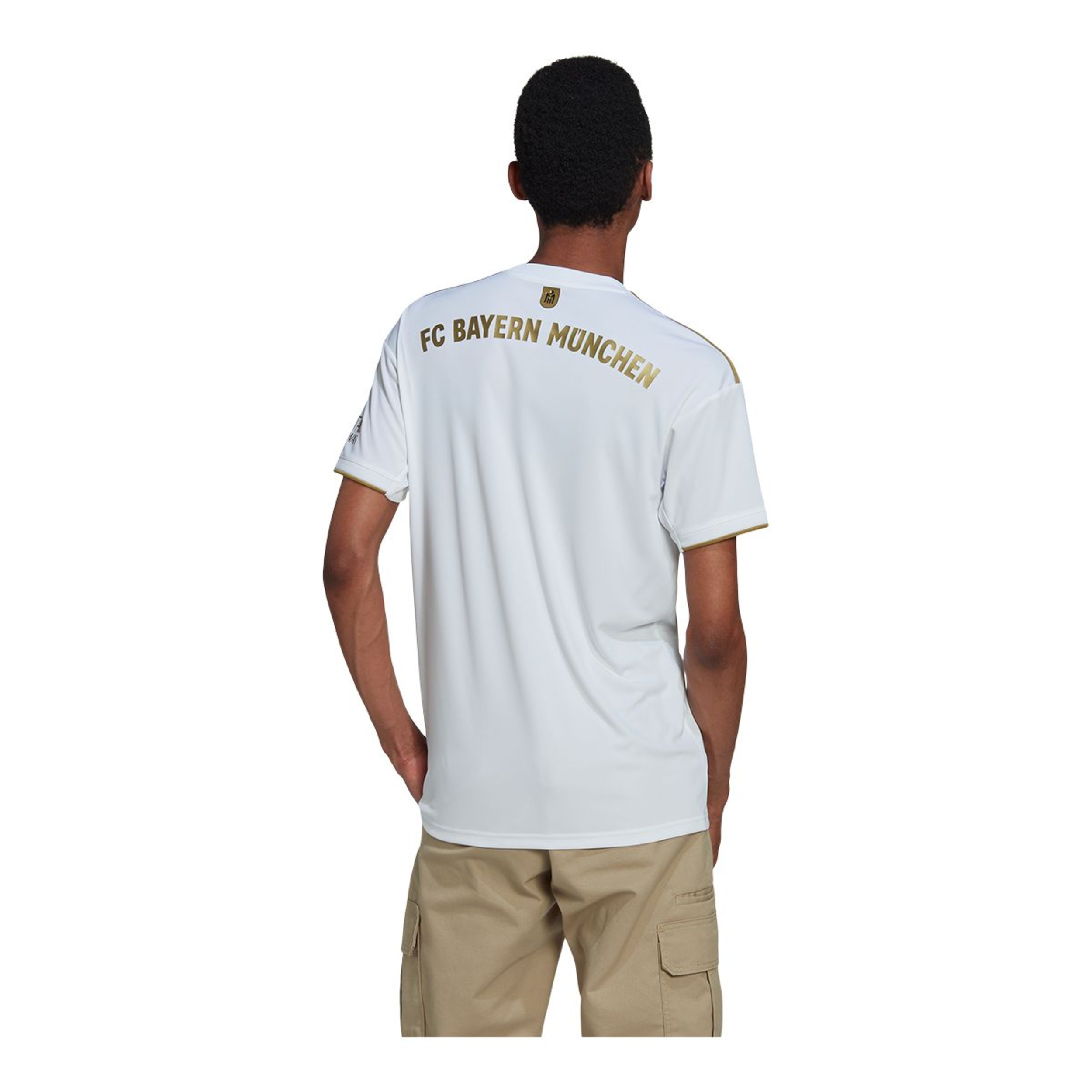 From its coat of arms. From atop its town hall. The Münchner Kindl has watched over Munich since the 13th century. Displaying the city's famous symbol and eye-catching gold details, this adidas FC Bayern football jersey carries hometown memories to away grounds. Moisture-absorbing AEROREADY makes every journey a comfortable one for fans. Made with 100% recycled materials, this product represents just one of adidas's solutions to help end plastic waste.