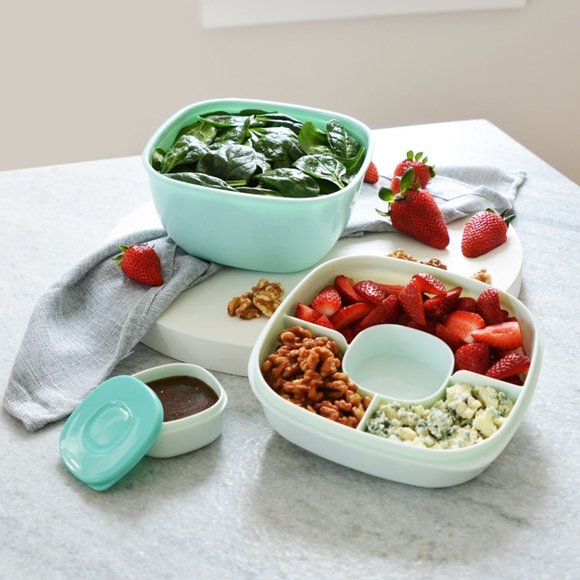 Locks In Freshness: The top lid of the salad bowl features a rubberized sealing ring and locking clips to keep food fresh on the go.