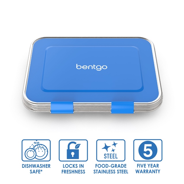 Bentgo Kids Stainless Steel is the first stainless steel bento-style lunchbox with leak-resistant technology. This durable lunch solution makes packing healthy meals easier for the family and better for the environment. It’s a sleek solution for sending your child to school with a fresh, healthy, portion-perfect lunch. EASY CLEAN UP: Place the lunch box and bonus container on the top rack of the dishwasher for quick cleaning. Hand washing is recommended to preserve the life of the lunch box. KID-FRIENDLY LOCKING CLIPS: Two kid-friendly locking clips on the front of the lunch box are easy for small hands to open and close.