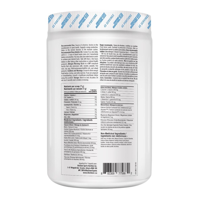 The BioSteel’s High-Performance Sports Hydration Mix provides a hydration and electrolyte replacement, as well as sustained energy without the use of sugar or caffeine. This premium mix contains amino acids, minerals and vitamins which all help reduce fatigue and increase performance whether you’re competing in sport or facing a busy workday. With a vitamin B blend, this hydration mix plays a crucial role in metabolizing fats, carbohydrates, and proteins, which are essential for energy production.